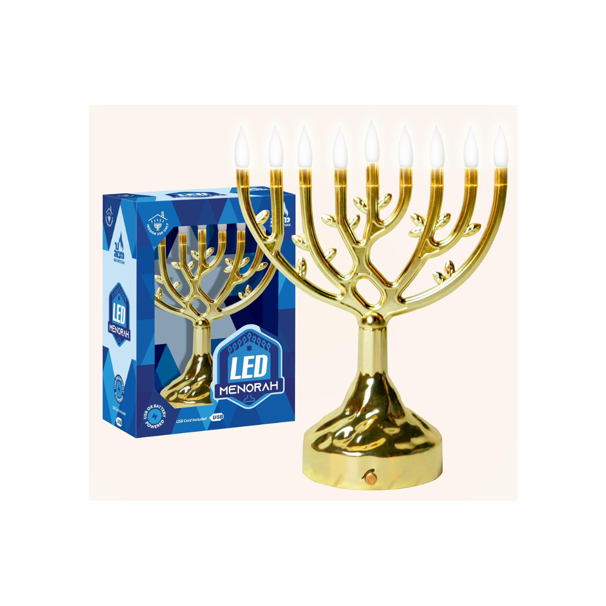 DECORAÇÃO FESTIVA DE LED PARA CHANUCÁ: Menorá iluminada com design da Árvore da Vida, perfeita como decoração para mesas de festas ou como presente especial para Chanucá.