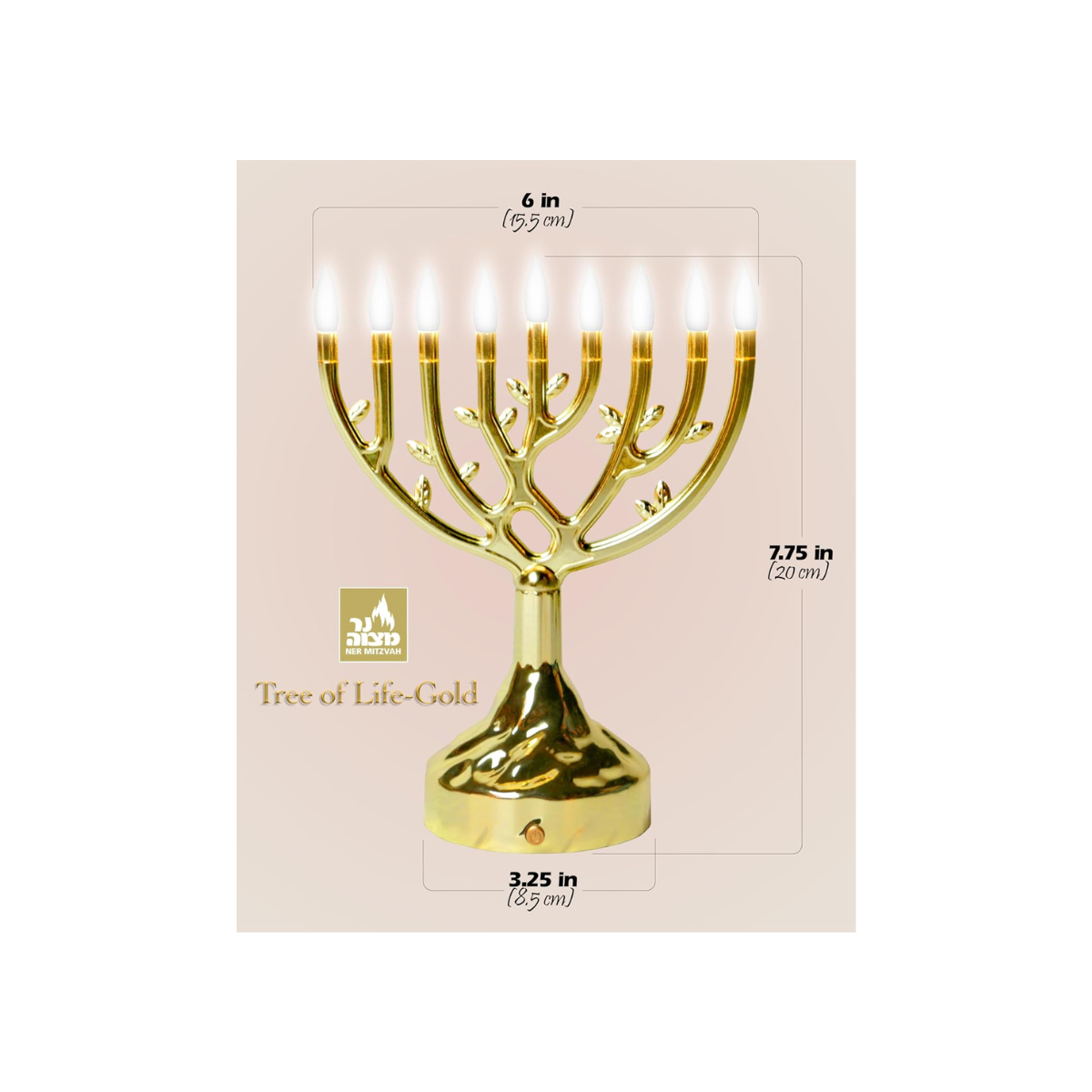 Chanukiá - Menorá de LED Árvore da Vida - Dourada - 20 cm