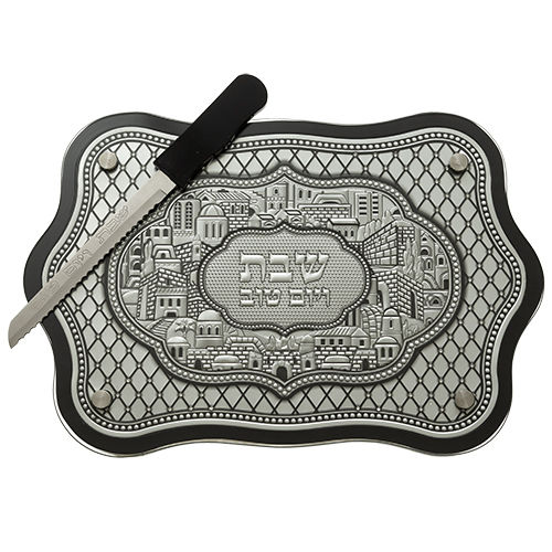 Home Judaica Elegante Bandeja para Chalá com Faca Elegante Bandeja para Chalá com Faca SKU: JDC0048 99,00 € Desconto de %. IVA incluído. O produto encontra-se sem stock. Adicionar à wishlist Descrição: Bandeja de chalá elegante e especial feita de madeira, com faca. Com placa em metal com ilustração e inscrição em hebraico "Shabat e Yom Tov". Dê à sua mesa de Shabat e das Festas um aspecto único com uma bandeja de chalá elegante! Uma excelente prenda! Marca Art Judaica Tags PrateadoMetalMadeira Material: Madeira e Metal Peso: 3 kg Características Partilhar