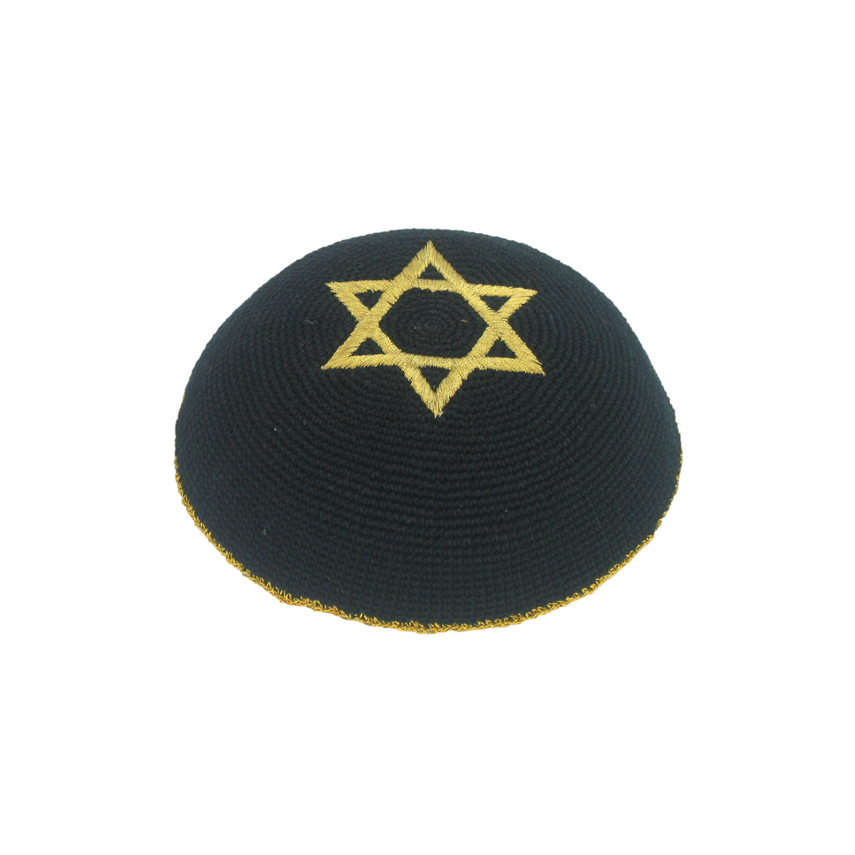 Kipá Tricotada 16 cm - Preta com Estrela de Davi Dourada