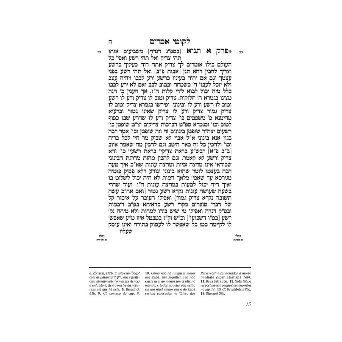 Notas de rodapé que são resumos dos comentários feitos pelo Rebe de Lubavitch