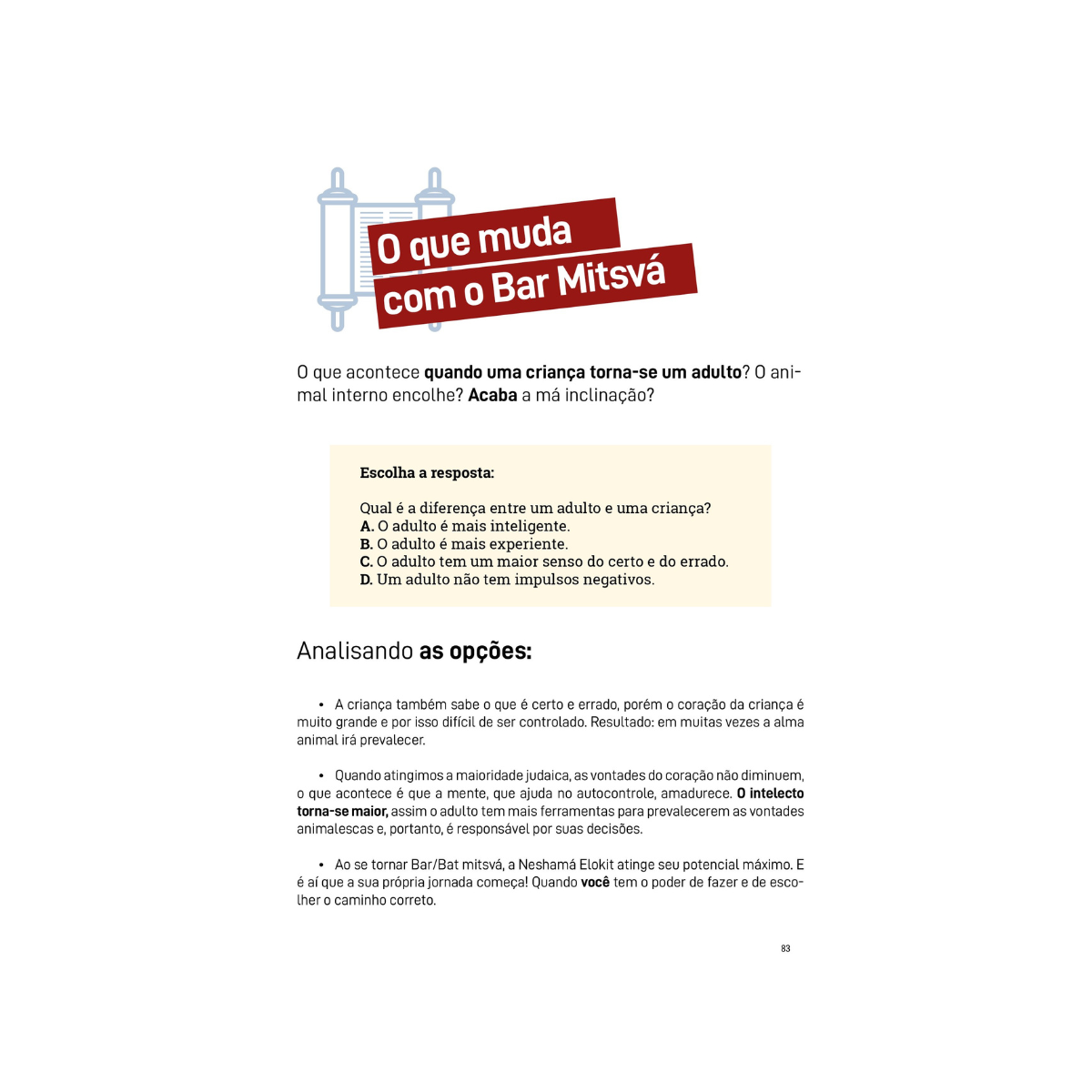 Após mais de 16 anos preparando alunos para a cerimônia de Bar Mitsvá, o autor percebeu a necessidade de elaborar este livro que, com a ajuda de um professor, guiará o aluno a não somente dar um show no dia da cerimônia, mas principalmente vai prepará-lo para desenvolver um relacionamento pessoal com o judaísmo e Deus. Afinal, o mais importante não é fazer Bar Mitsvá, mas se tornar Bar Mitsvá.
