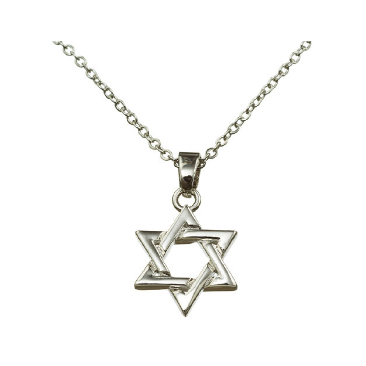 Pingente de Níquel Maguen David Pequeno 2 cm, Colar 45 cm - Cor Prata