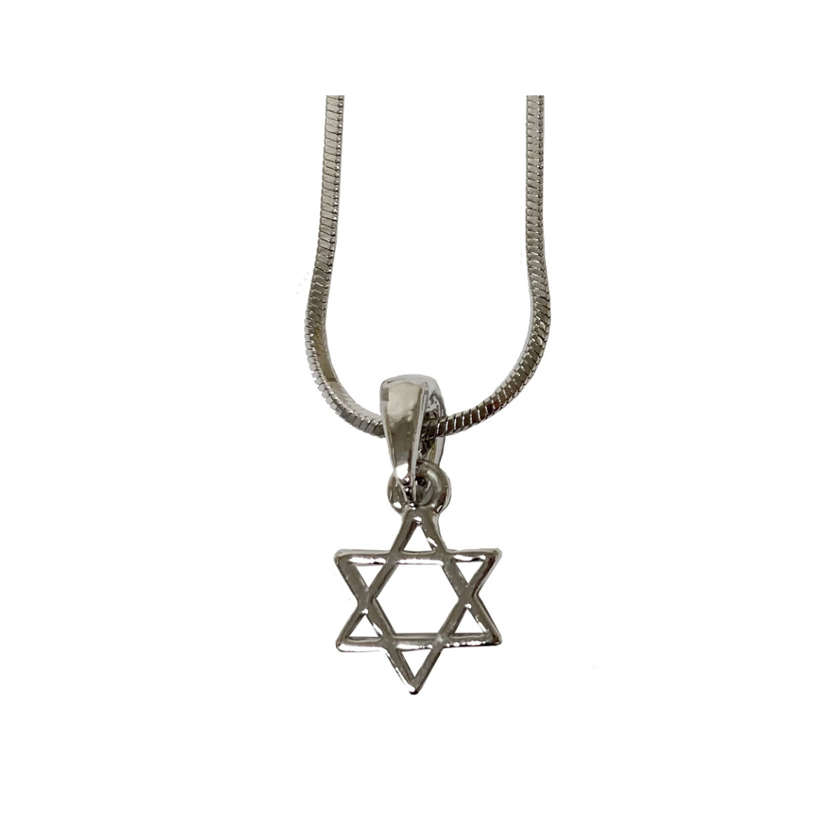 Pingente de Ródio Maguen David Pequeno 1 cm, Colar 45 cm - Cor Prata