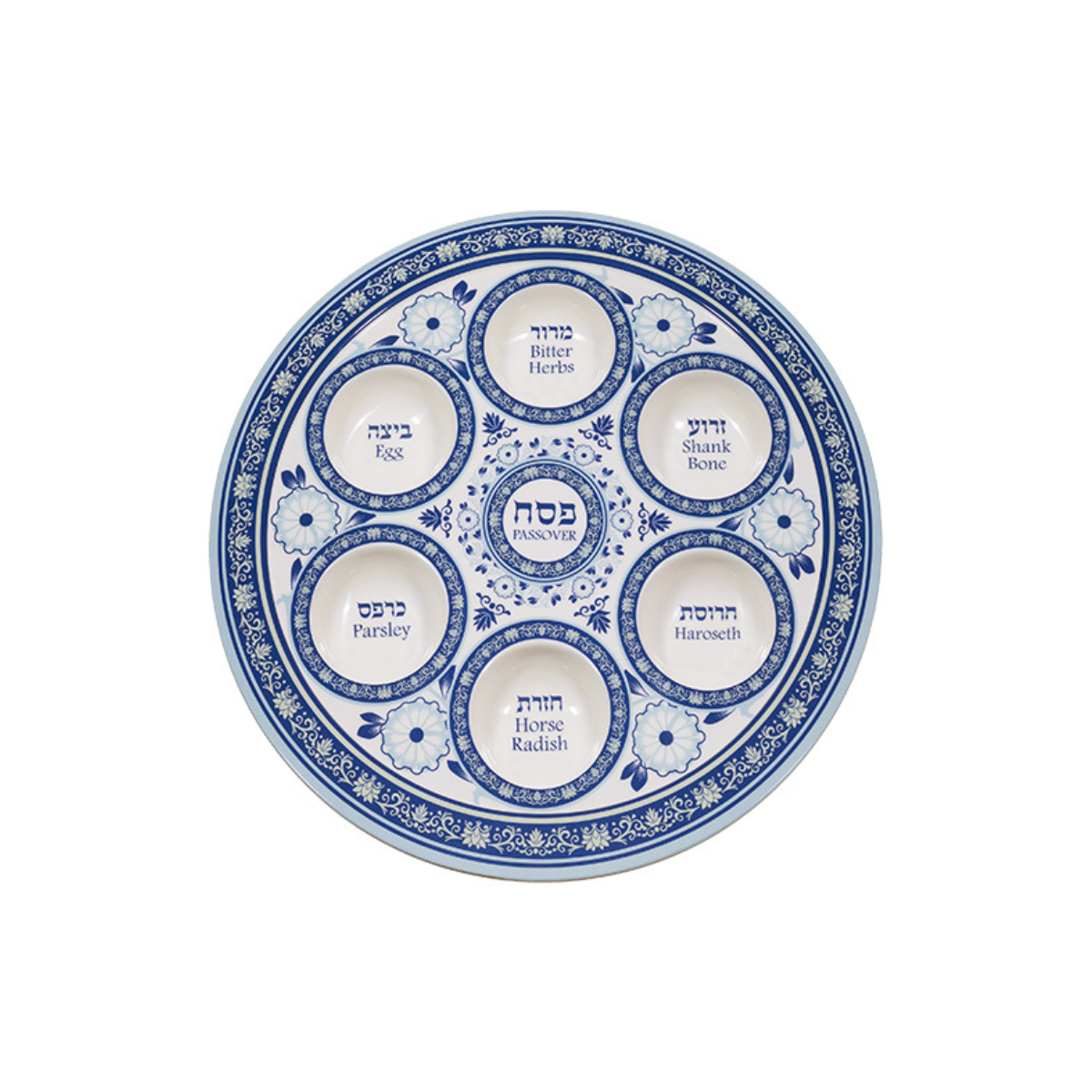 Ele adiciona um toque de elegância à sua mesa de jantar durante a celebração. Os nomes dos elementos estão escritos em hebraico e inglês, o que facilita a identificação do elementos e ajuda a manter a tradição do Pêssach.