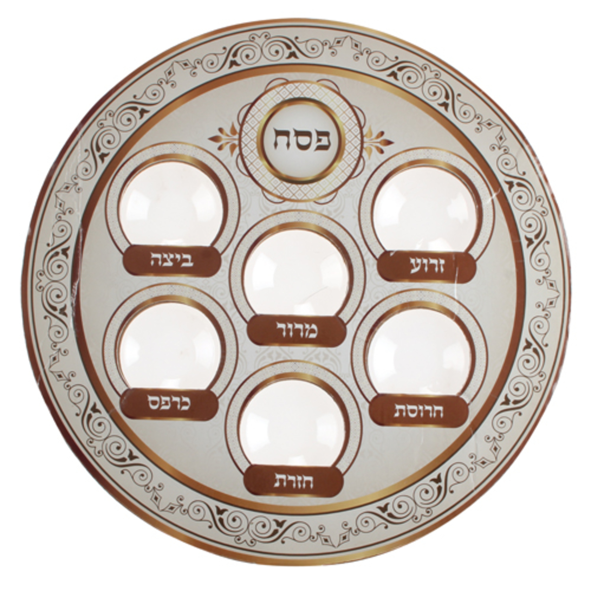 Prato de Pêssach de Papel-Cartão e Plástico 36 cm - Castanho