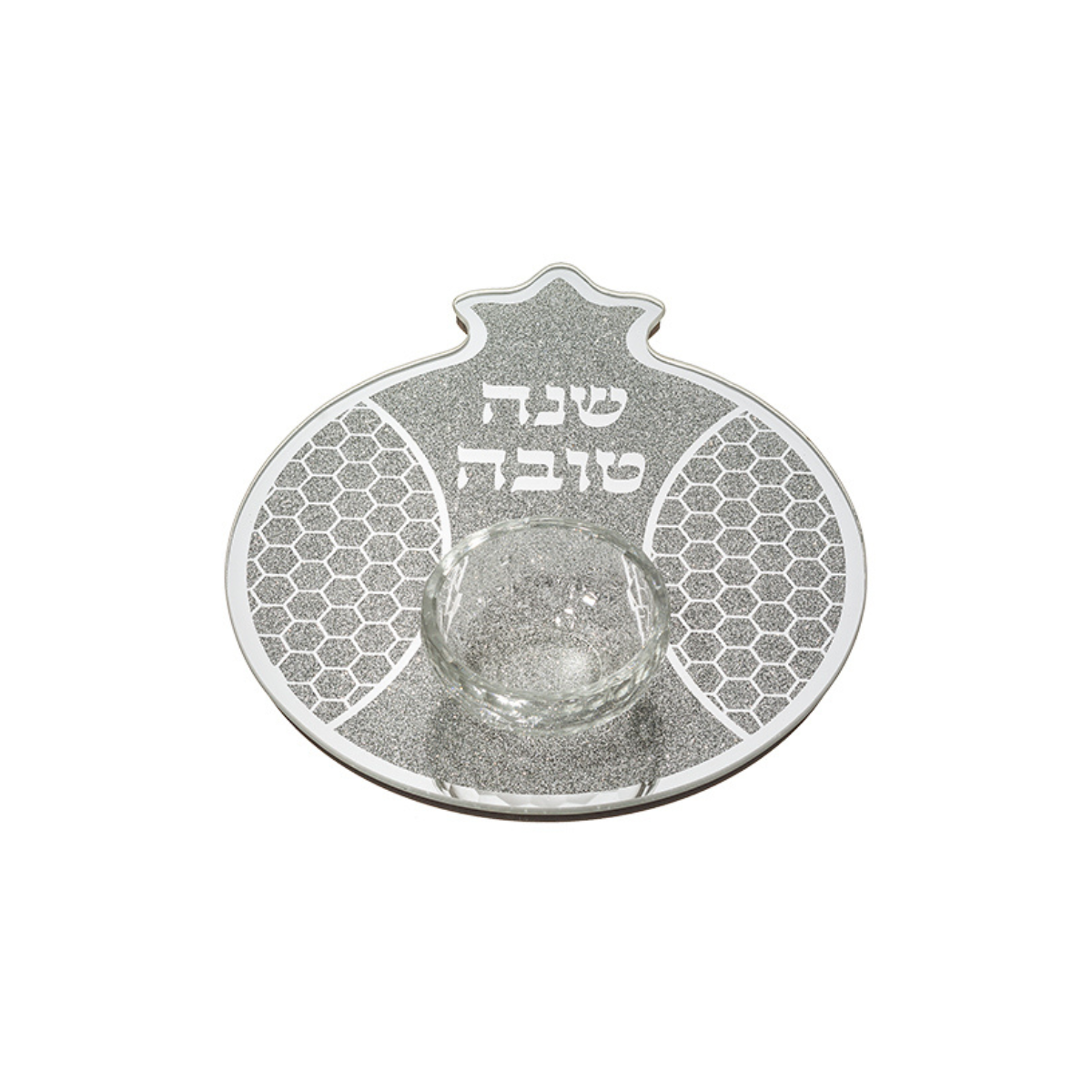 Este elegante Prato de Vidro em formato de romã é perfeito para servir maçã com mel nas celebrações de Rosh Hashaná. Com um design sofisticado, o prato inclui um recipiente para mel na parte inferior, facilitando a tradicional combinação de maçã mergulhada em mel para um ano doce e próspero.