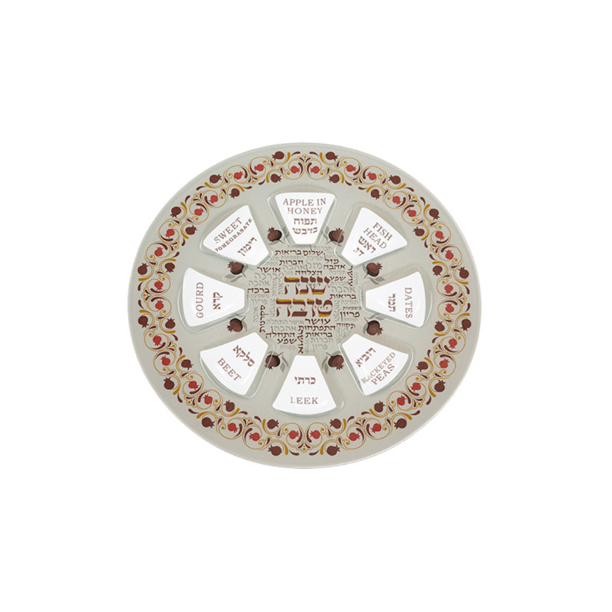 Prato para Sêder de Rosh Hashaná de Vidro 35 cm - Romãs Vermelhas