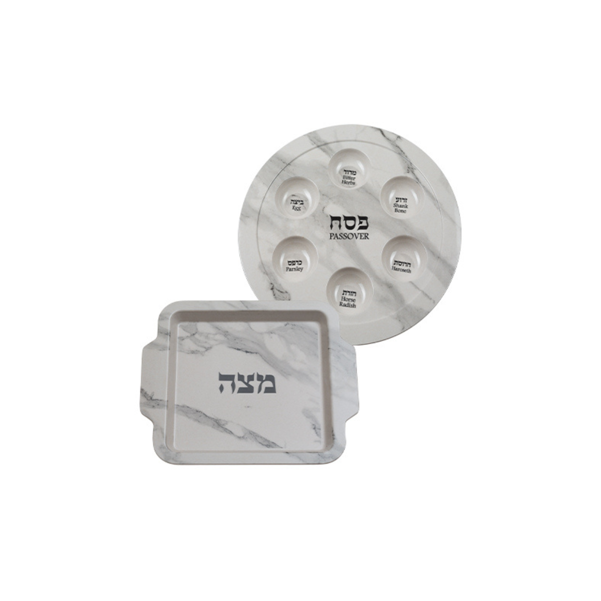 A Yom Tov Store oferece esse conjunto de pratos de Pêssach elegantes e funcionais, perfeito para celebrar a festa de Pêssach, a Páscoa judaica. Os pratos (keará e para matsá) são feitos em melamina de alta qualidade, proporcionando espaço suficiente para acomodar todos os alimentos tradicionais do Sêder de Pêssach.